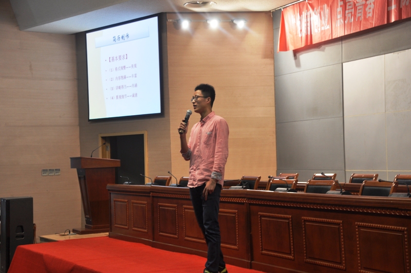 本次报告会邀请了我院在就业过程中比较成功的典型人物。第一位罗芳被同学们戏称为“面霸”,她用幽默的语言和真实的事例跟同学们分享了一个非985、非211高校的毕业生如何在面试中崭露头角,如何在面试的过程中发挥出最佳的状态,她以《贫民窟的百万富翁》这部电影作比,向同学们展示即使是“双非”的高校我们也可以表现的很好。她的面试与就业的经验通过幽默的语言和真实的经历打动了现场的观众,赢得阵阵掌声。第二位主人公刘毅就简历制作和面试技巧为在场的同学作了详细的介绍,为即将面临这些问题的大三学子们提出了许多有价值的建议,并帮助他们科学谋划学业生涯,引起了现场同学们的共鸣。