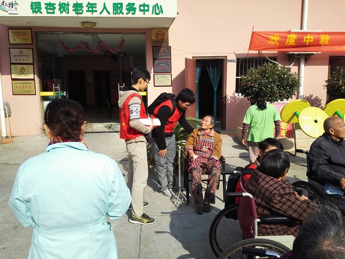 随着活动即将进入尾声,同学们纷纷送出了自己的用心准备的小礼物。当微不足道的小礼物送到了老人手中的时候,回报同学们的是久违的灿烂的微笑。离别之际,老人们用不舍的眼光目送志同学们离开。