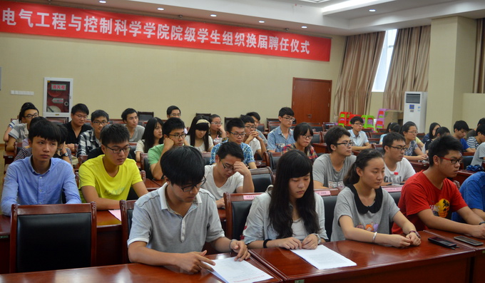 7月8日下午,电气工程与控制科学学院在机电楼报告厅隆重举办院级学生组织换届聘任仪式。院党委副书记季宜敬、院学生事务办公室主任刘雪、院团委书记路遥、吴雨婷及新老院级学生组织主要学生干部出席了聘任仪式。会议由吴雨婷老师主持。