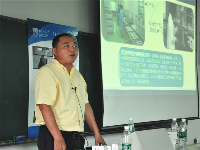 林琳先生2004年毕业于我校生物工程专业,也是2011年我校建校110周年杰出校友。他在事业上的成功吸引了许多新生。同时,新生对林董事长的企业也非常好奇。接下来,林董事长为大家简单地介绍了自己企业的工作性质、专业设备以及生产车间的条件。新生认真地观看着并不时提出自己的疑问,林董事长也一一解答。