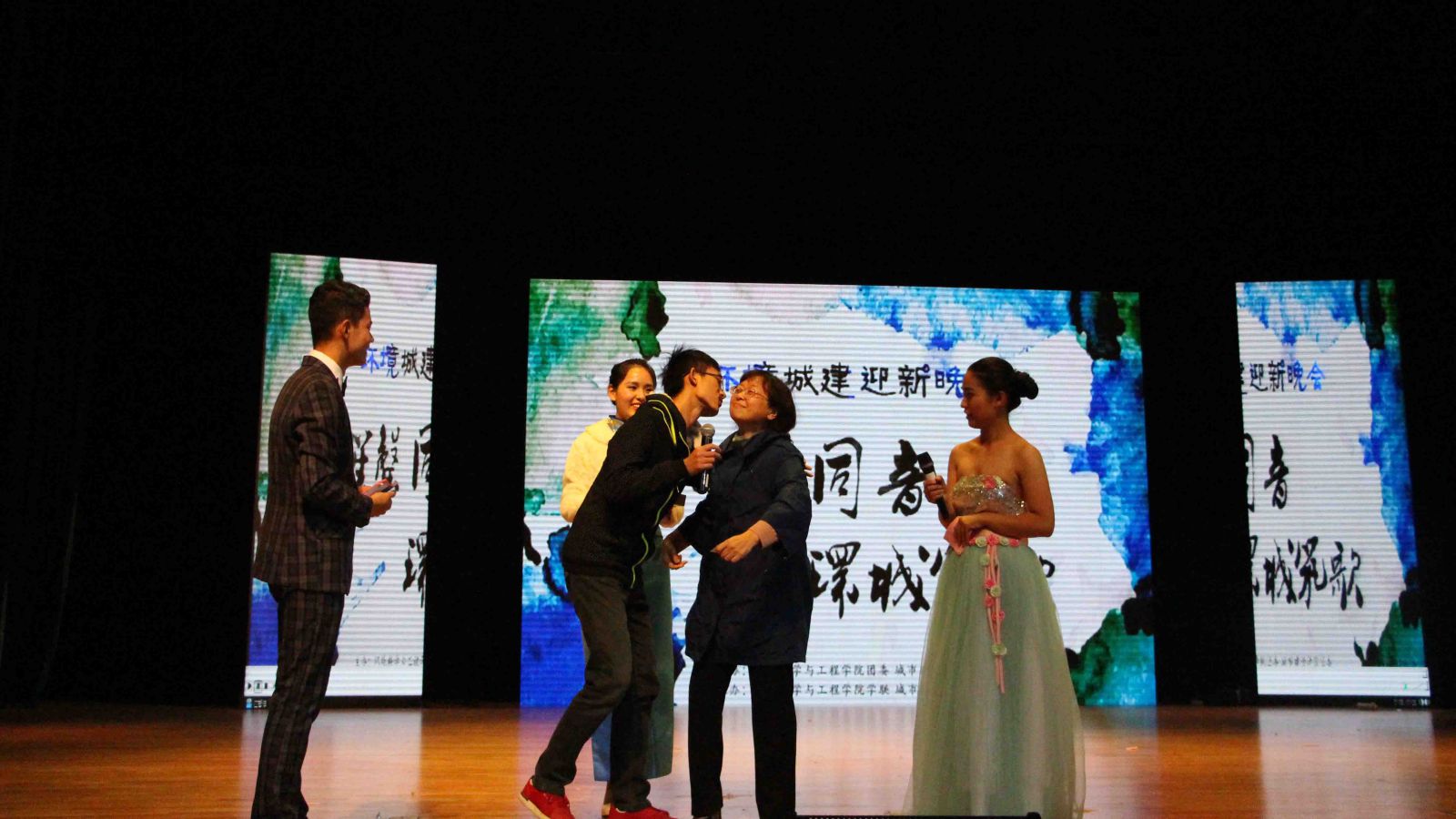 11月13日晚6点,由环境科学与工程学院与城市建设学院联手打造的“笙罄同音,环城筑歌”2015级师生联谊晚会在江浦大礼堂隆重举行。环境科学与工程学院院长徐炎华教授、党总支书记马丽春老师,城市建设学院党总支副书记严建骏老师,环境科学与工程学院副院长邓风教授,环境科学与工程学院博士生导师魏无际教授,环境科学与工程学院院长助理曹扬老师,办公室主任吴平老师、环境工程系主任赵贤广教授、水质科学与工程系主任周永璋教授、环境科学系主任张宇峰教授、环境工程系刘志英老师,城市建设学院市政工程系副主任肖雪峰老师,城市建设学院学办主任李有林老师,城市建设学院分团委书记孙家文老师,环境科学与工程学院分团委书记、学办主任张莼波老师,环境科学与工程学院分团委副书记、15级新生辅导员汪俞辰老师,环境科学与工程学院和城市建设学院2015级全体新生及研究生代表出席并参加了本次晚会。