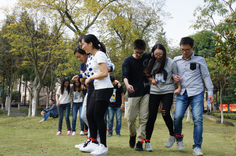接着,同学们通过一些团队小游戏如跳长绳、掷沙包、三人两足、七人六足等,让同学们参与其中,体验职场上中团队协作精神的需求。对一些性格内向、比较自卑的同学来说,团队游戏克服了他们在公众场合的恐惧心理,实现了自我突破和挑战。此外,同学们还通过场景模拟,训练了同学们在求职过程中所必需的沟通能力和技巧。活动持续开展了一个半小时,通过拓展训练让参训同学在整个过程中经历了团队和个人的一系列考验,磨练了大家克服困难、知难而上的毅力,培养了他们健康的心理素质和积极进取的人生态度。一方面在运动中愉悦身心,另一方面通过合作让大家认识到团队的重要性,增进同学之间感情,培养良好的合作能力。最后,就大家对未来职业规划的结论而言,主持人向大家阐明,无论将来涉及哪个行业,都应该具备以下四个竞争优势:一、自信,只有自己相信自己,别人才会相信你,继而委以重任;二、团队合作精神,个人的力量是有限的,其创造的价值也是有限的,应该学会和别人合作,在团队中各施所长,以此实现个人价值最大化;三、积累与自己所选专业扎实的专业知识,因此,努力学习是必要的;四、敏锐的洞察能力,对自己行业前景动态保持敏锐的洞察,居安思危、防微杜渐,才能赢得先机。
