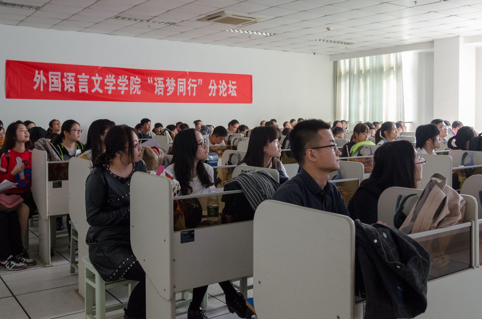 10月16日下午,外国语言文学学院“语梦同行”本科生分论坛在外语中心603教室如期举行。本次论坛旨在加强同学们的学术交流,提升其创新实践能力。外语学院副院长鲍贵教授、副院长韩亚文副教授应邀出席并担任了此次分论坛的评委,外语学院部分2015级新生参加了本次论坛。