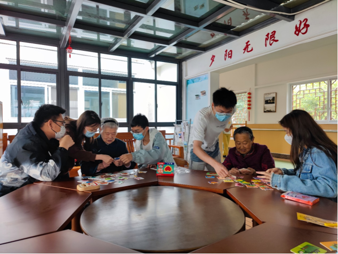 活动中,学院青年志愿者以两人为一组,陪同老人亲切交流日常生活,回忆美好过往。随后又开展了拼拼图、投沙包等游戏帮助老人们活动身体。接着,志愿者们还为老人们打扫了房间,和老人们下棋,用陪伴温暖人心。在嘹亮的合唱声中,本次活动顺利结束。