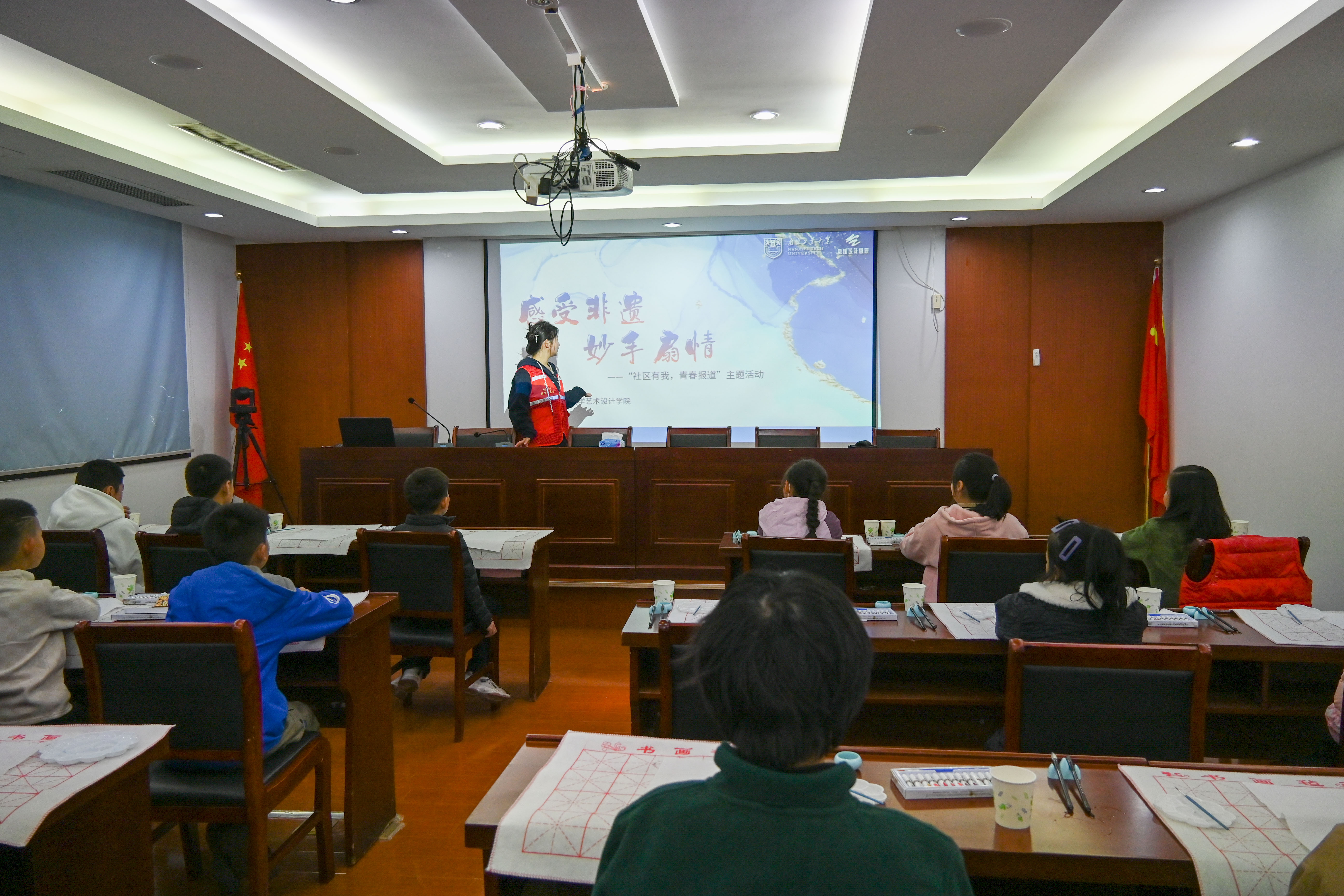 为深入学习贯彻党的二十大精神,秉承“传承和发扬传统文化”的理念,全面贯彻落实《关于在大学生团员中开展“社区有我 青春报到”行动的通知》,充分发挥共青团实践育人在高校“大思政”工作体系和“三全育人”工作格局中的重要作用。11月11日下午,万博体育bet 工设2301团支部、工设2101团支部联合艺术设计学院学生会与浦口金泉社区深入开展高校大学生团员青年“社区有我 青春报到”行动,举办了主题为“感受非遗,妙手扇情”的志愿授课进社区活动,为孩子们上了一堂生动的水墨体验课。