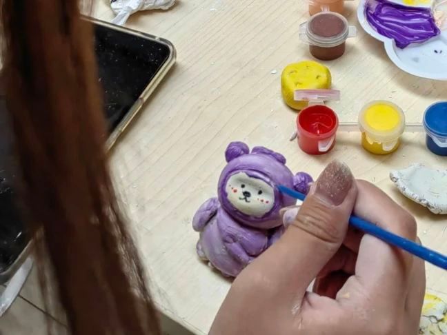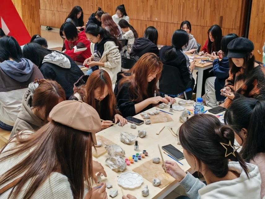 活动于下午两点正式开始,参与者们围坐在桌子前,湿润的粘土在同学们灵巧的双手下,得以塑造成百般姿态,内心的焦虑紧张也在捏塑的过程中随指尖流溢。展台上很快就摆满了参与者们的小小艺术创作,每一件作品都是一次心灵的对话,记录着独特而又温暖的故事。在一片欢声笑语中,“手‘塑’心灵,御风破浪”石塑黏土DIY活动圆满结束。
