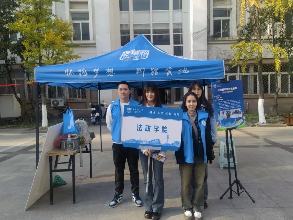 我校于沉毅广场举办安全嘉年华活动,法政学院院积极响应,负责网络安全区的活动,通过套圈的方式帮助同学们学习反诈小知识,使同学们零距离感受校园反诈的浓厚氛围,下面就让我们一起来看看现场画面吧!