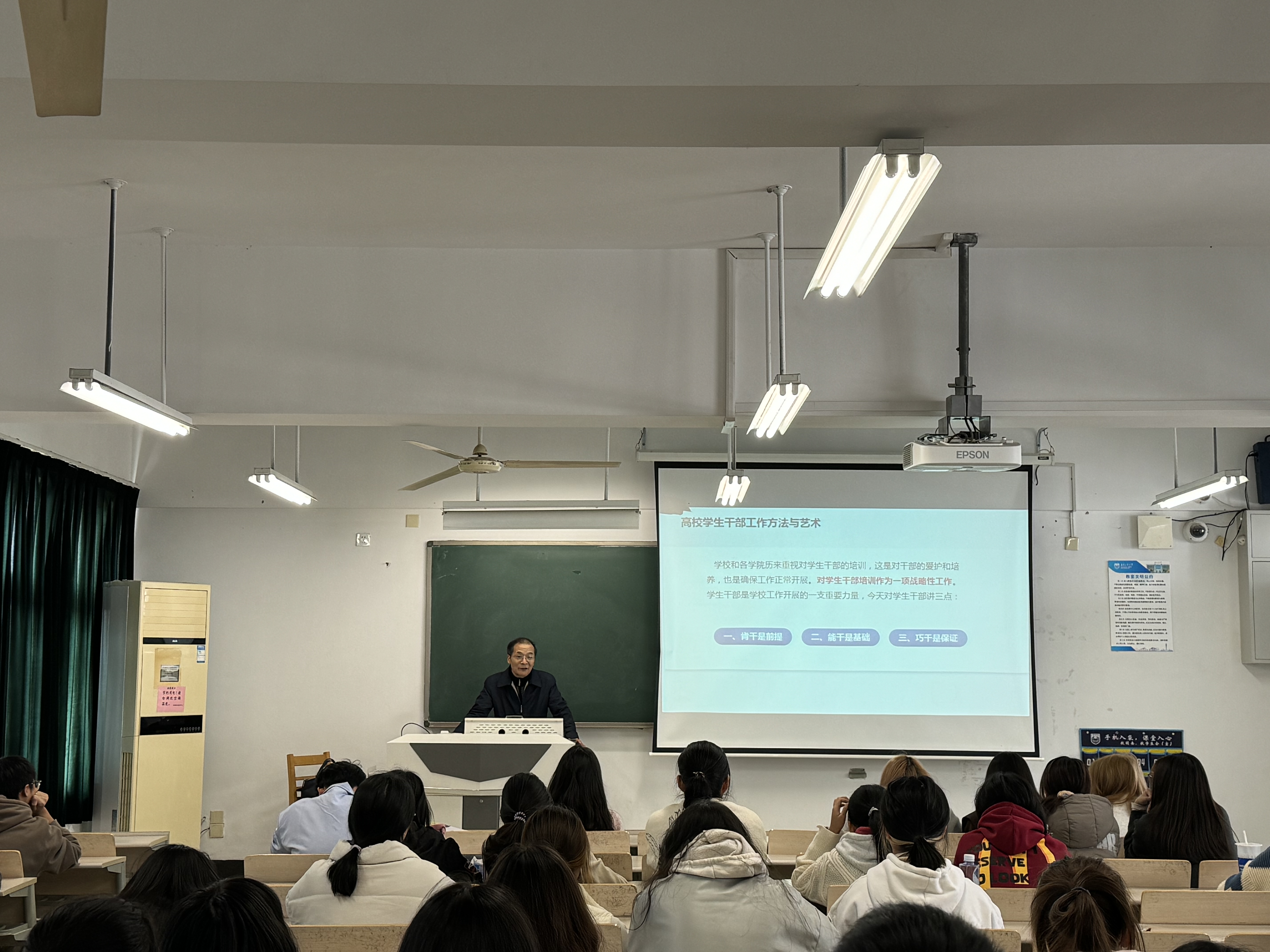 为持续加强艺术设计学院学生骨干队伍建设,提高学生骨干的政治思想觉悟和实际工作能力,明确学生骨干的工作任务、工作职责、工作要求,发挥学生骨干的凝聚力和号召力。11月15日下午,艺术设计学院邀请校关工委委员、艺术设计学院原党委书记陈建华老师为2023级学生骨干作了题为和“高校学生干部工作方法与艺术”和“践行‘校训’勇于‘筑梦’”专题培训。