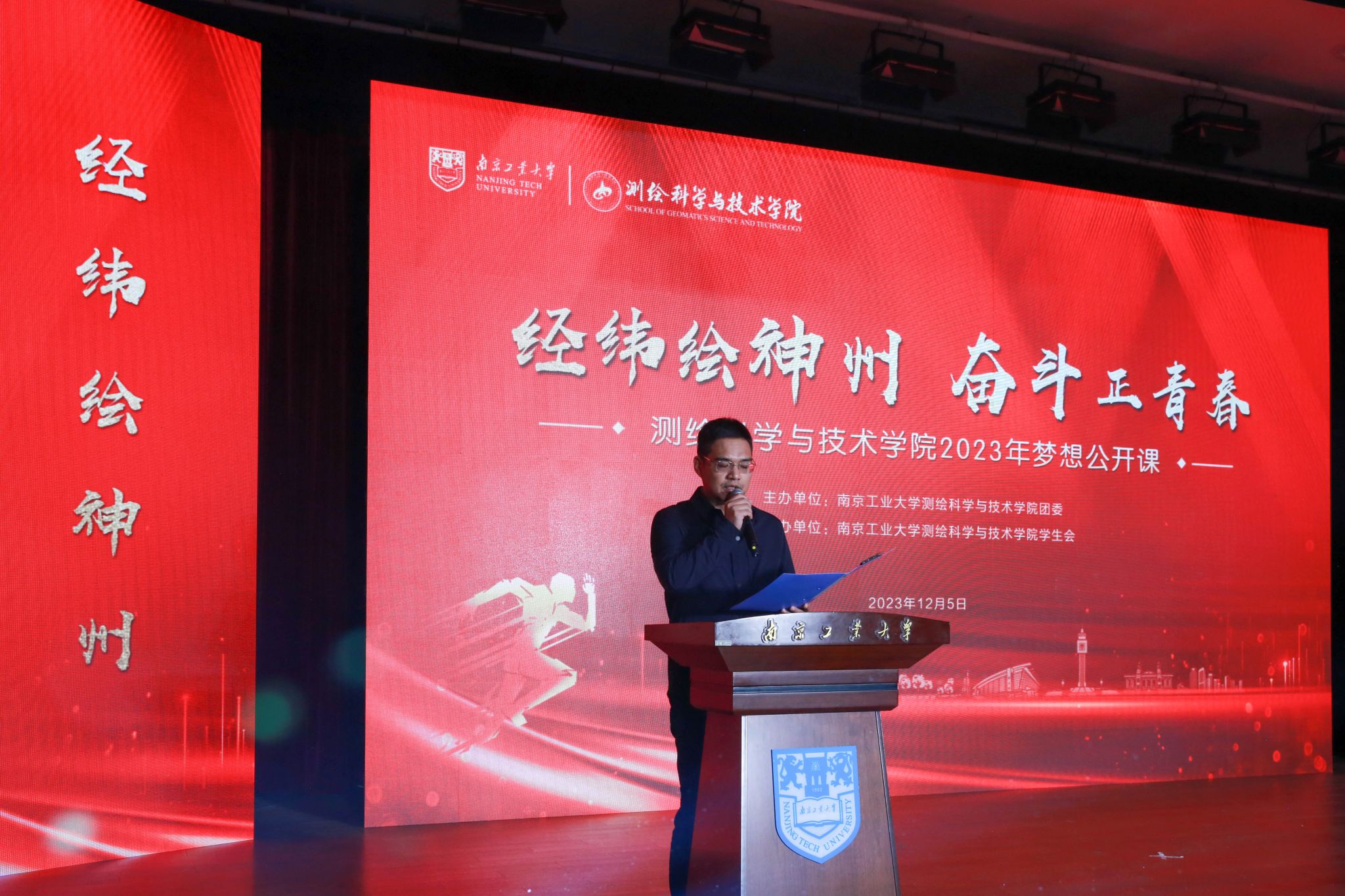 12月5日晚,测绘科学与技术学院“经纬绘神州,奋斗正青春”2023年梦想公开课暨迎新晚会在浦江报告厅精彩上演。院领导俞建光、徐敬海、荣华伟、束蝉方、张广运,各系主任,全体辅导员,教师代表以及2023级全体新生等300余人现场观看了晚会。