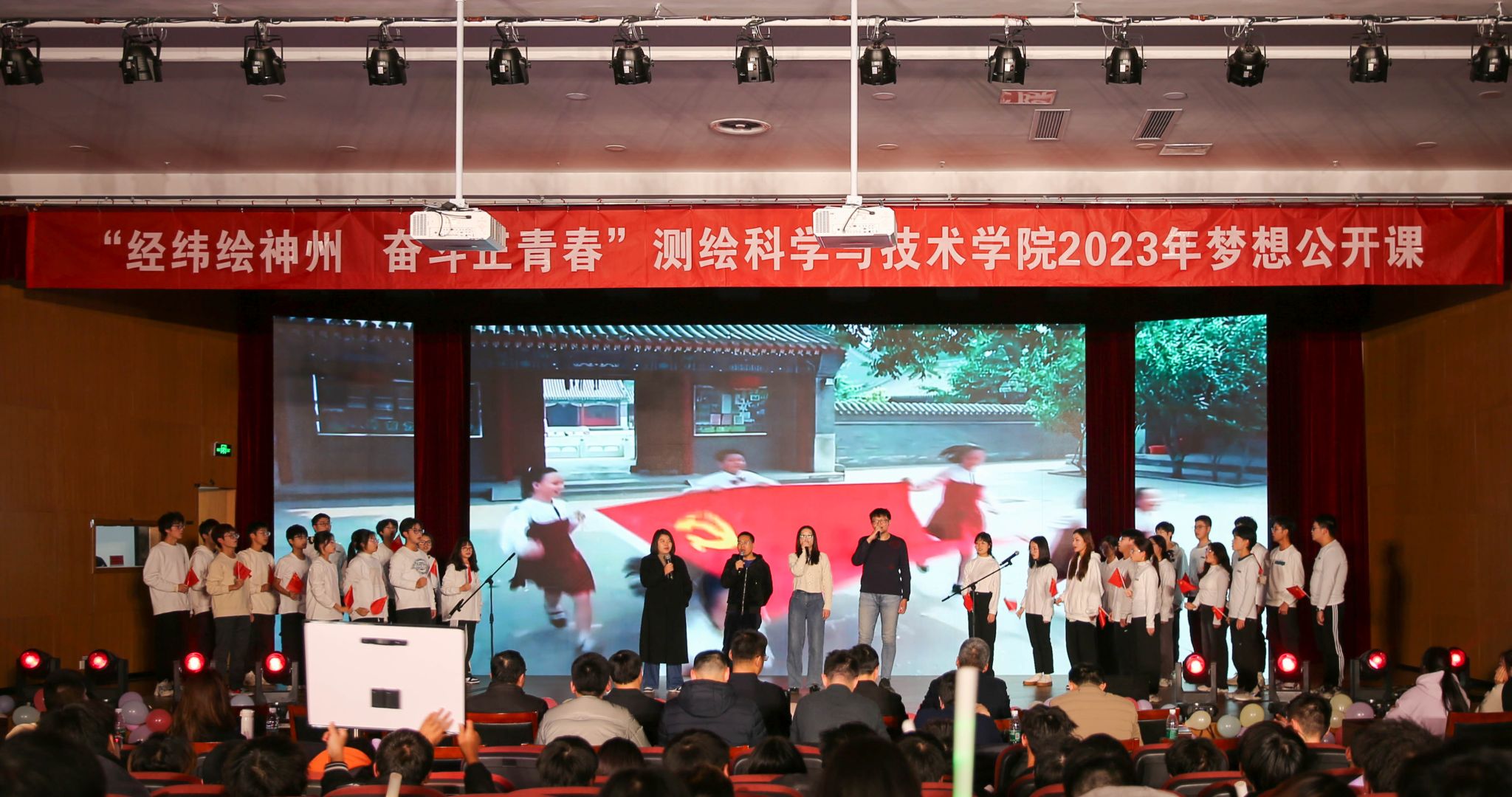 本次梦想公开课作为新生入学后的“美育第一课”,将爱党爱国爱校教育融入节目全过程,发挥了展演作品以美铸魂的育人功能,激励着同学们将个人理想与学校、国家发展紧密联系在一起,爱党爱国、爱校荣校,砥砺奋斗、筑梦前行。踏浪前行风正劲,以梦为马争朝夕。2023级测绘学院新生将赓续学院精神,勇立潮头,谱写奋进逐梦的新篇章。