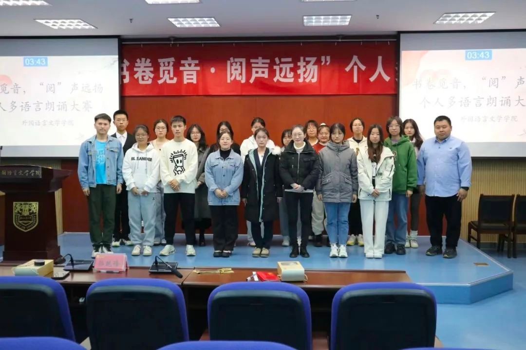 诵声朗朗,声声传韵。为丰富学生文化生活,激发学生朗诵热情,促进万博手机版官网登录网页 繁荣,近日,外国语言文学学院于进学楼501报告厅举办“书卷觅音•阅声远扬”个人多语言朗诵大赛决赛。本次大赛由赵一同主持,学院团委副书记王鑫老师、汉语国际教育郭乾隆老师作为本次大赛评委出席。