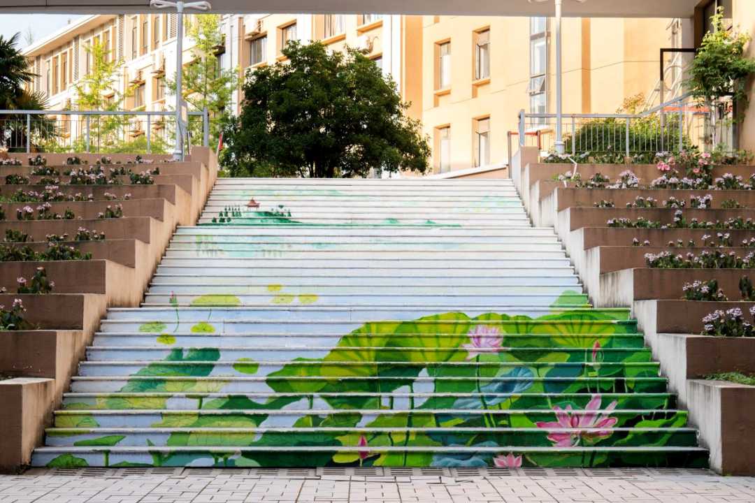 本次台阶立体彩绘是由建筑学院和校后勤处共同策划,以“莲”寓“廉”为主要思想,传播学校开展的廉洁教育宣传主题活动;同时也正值毕业季,以“小荷才露尖尖角”为题,祝福即将走出校园的同学们未来在广阔的天地中盛放,为建设祖国做出自己的贡献,实现自己的理想和价值。