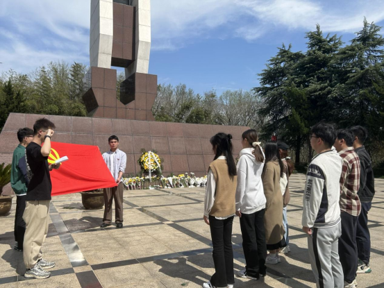 松柏长青,浩气长存。活动中,同学们敬献花圈、鲜花,鞠躬行礼、全场默哀、告以哀思。党支部代表刘硕向同学们介绍了求雨山文化公园的历史背景以及“三浦战役”中先辈英雄的英勇事迹:他们解放了江浦、浦口和浦镇,为解放南京扫除了外围障碍,做出了重大贡献。随后,在庄严肃穆的革命烈士纪念碑前,全体成员整齐列队,静默肃立,闭目默哀,敬献鲜花,寄托对革命烈士的无限哀思。最后,面对庄重的革命烈士纪念碑,鲜红的党旗、团旗,在场同学高举右拳,重温入党、入团誓词,通过一句句铿锵有力的誓词,表达了“永远跟党走”的坚定决心。
