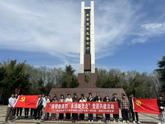 为缅怀革命先烈,用好红色资源,厚植家国情怀,3月30日上午,安全科学与工程学院硕士研究生第一党支部联合消防2302团支部赴南京市浦口区求雨山革命烈士纪念碑开展“清明祭英烈,永远跟党走”党团共建活动。共计34名学生代表参加活动,并于南苑学生社区开展行前安全教育,活动由团支部书记时尚主持。