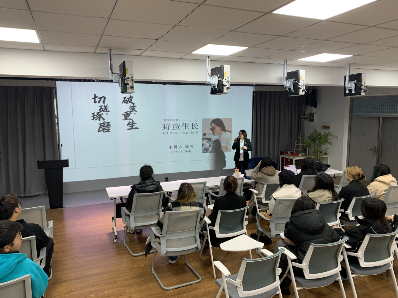 讲座伊始,陈钧锴老师对中国独立珠宝设计师陈昕进行了介绍。随后,陈昕老师区分了珠宝设计与传统艺术设计的不同点,强调了珠宝设计的独特性,它不仅要求设计师具备艺术感和创造力,还要求他们对宝石的物理特性和市场需求有深刻的理解。她提到,珠宝设计是一个将美学和实用性结合的过程,而艺术设计则更侧重于表达和创意。