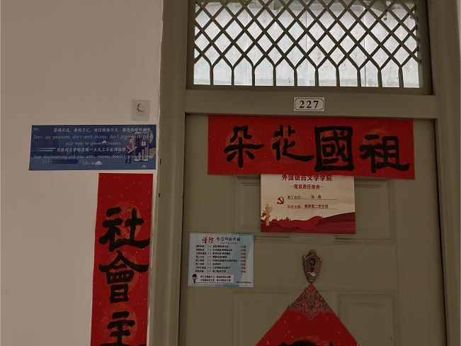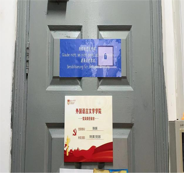 这些门贴不仅语言多样,在设计上也是独具匠心,让同学们在阅读时不仅能巩固语言知识,还能时刻提醒自己和同伴注意电信诈骗,真正做到以“标”治本。通过这次别开生面的“反诈门贴进宿舍”活动,同学们不仅培养了语言实际应用能力,还增强了反诈意识,可谓收获良多。“安全无小事,防骗需警惕”,外国语言文学学院将继续开展此类活动,通过各种创意和互动的方式,创造性地提高同学们的防骗意识,让“反电诈”深入人心,筑起一道安全的防线,守护同学们的校园生活。