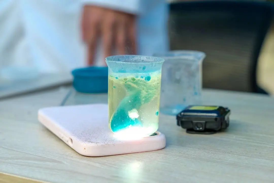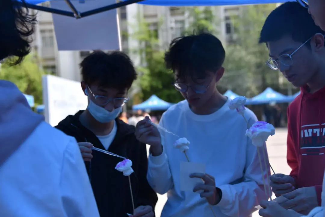 活动中,工作人员为参与者讲解实验原理以及做法,并依次展示了樱花雨、茶水变色、熔岩灯、流血的心、变色纸花、水中花海化学反应过程。小苏打加食用油带来强烈的视觉冲击,消失的颜色和模拟火山熔岩喷发让参与者感受化学的奇妙。在工作人员细心讲解辅导下,同学们兴致勃勃、争先恐后地围着展台,驻足观看了解、动手操作,在动手操作的过程中尽享“科技盛宴”带来的快乐。在领悟科学原理,亲身体验了化学的神奇与乐趣。