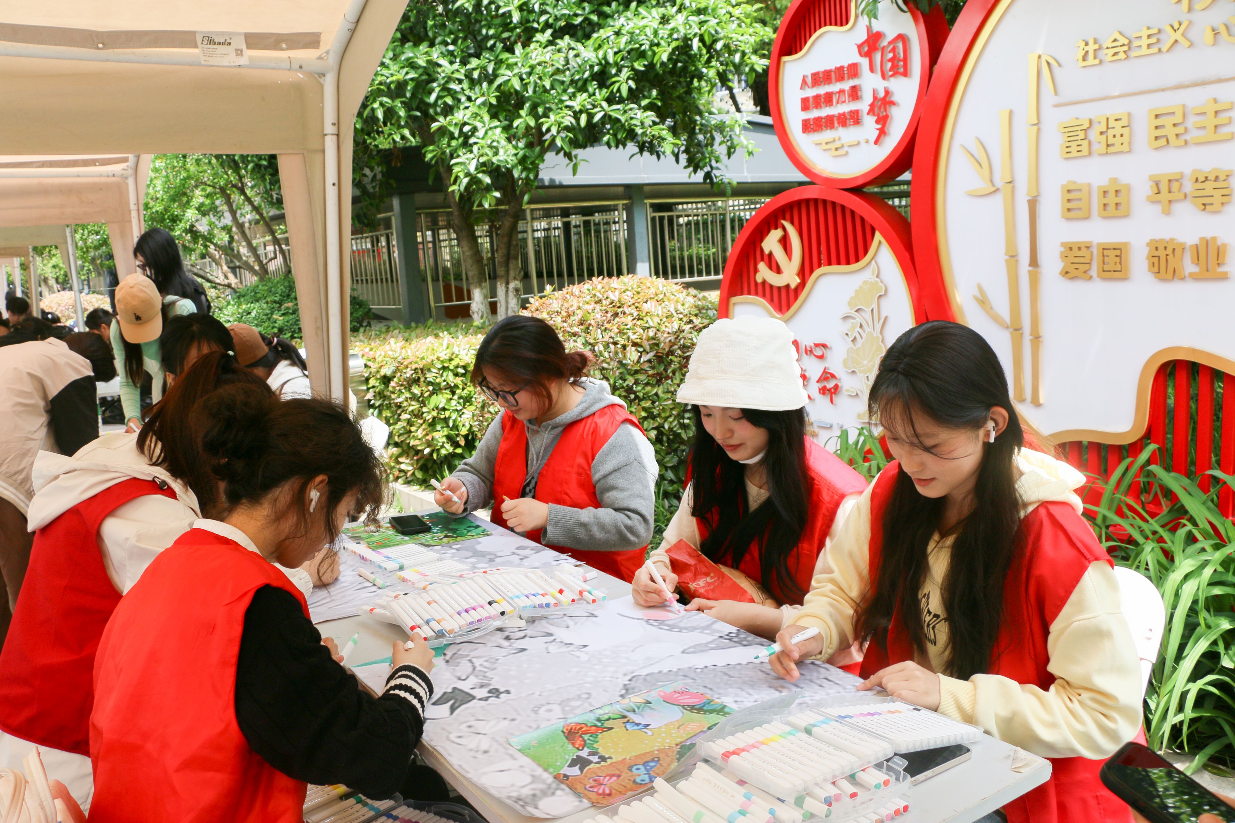 培育人才最终是要走向社会,通过与属地社区的共建,为学生提供更多融入社会的机会,也为当地的精神文明建设增添一抹属于万博体育bet 的靓丽色彩。通过校地支部共建,艺术设计学院鼓励学生融入社会,播撒艺术种子,拓展三全育人新格局,推动高校育人与社会实践的双向奔赴,积极参与到地方文化建设中,为社区开展群众性精神文明创建活动做出贡献。