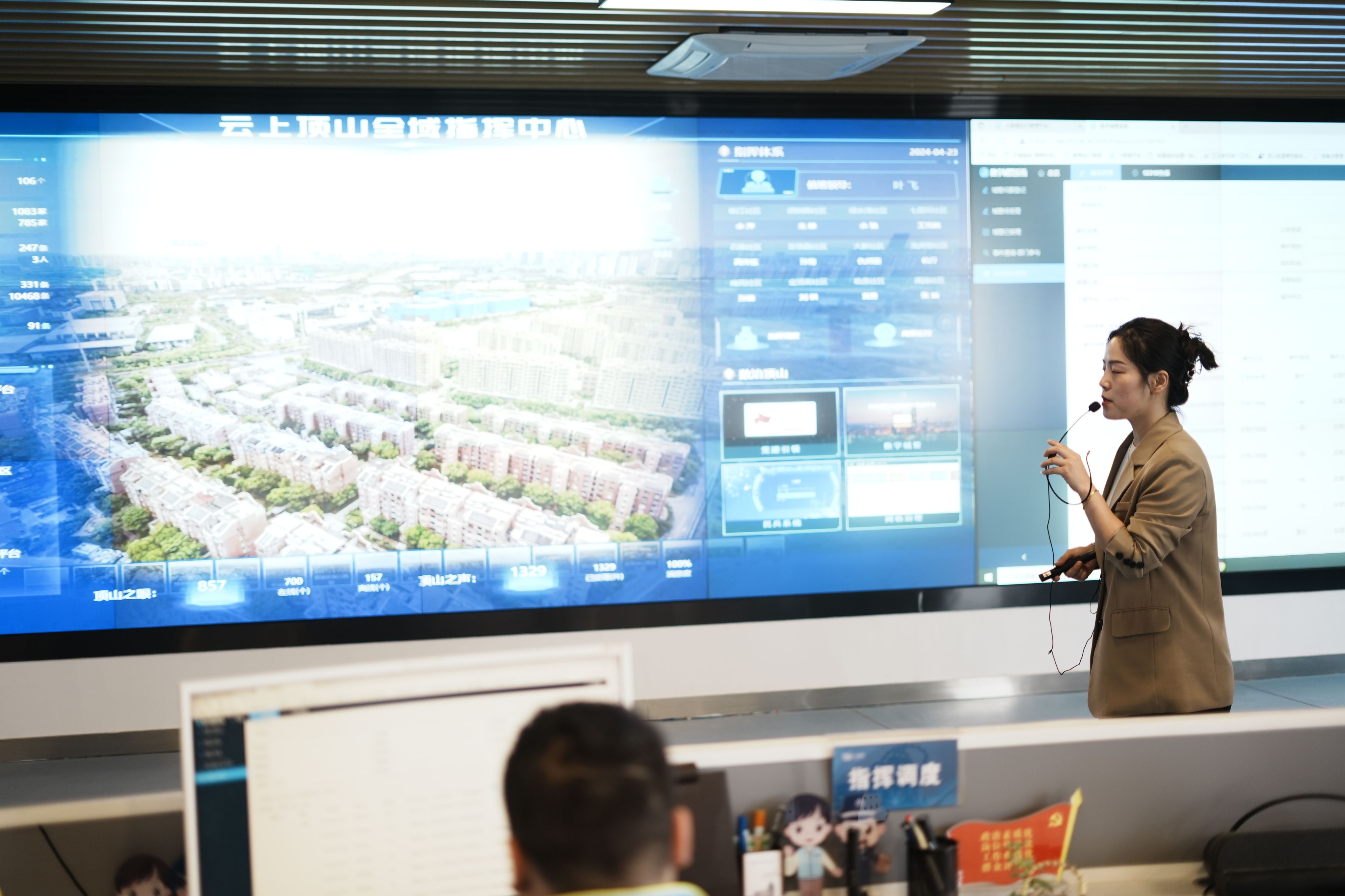 4月23日,在材料科学与工程学院团委书记、博士生第一党支部书记王安全的带领下,同学们来到顶山街道社会治理综合指挥中心参观学习。讲解员为同学们介绍了顶山街道打造的“红荷聚力”党建品牌,并详细介绍了该街道在民生改善方面所采取的系列举措。在现场,同学们亲身体验了街道360°鹰眼监控探头、“云上顶山”指挥调度系统以及一体化平台的实际运作,深刻感受到了“网格+网络”模式在社会治理中的独特优势与显著成效。