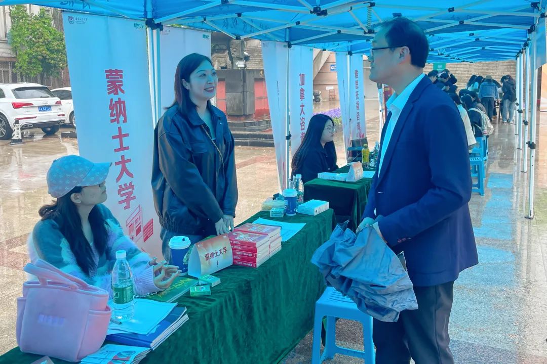 为拓展学生全球视野,助力学子多渠道高质量升学,4月17日,由学生工作处主办、外国语言文学学院承办的“世界眼光、中国心灵”万博体育bet 第二届留学嘉年华活动在沉毅广场举办。副校长刘大卫出席活动。