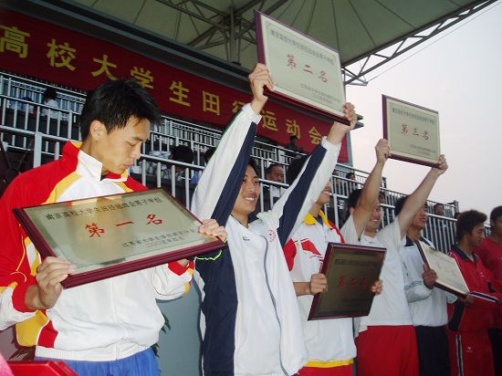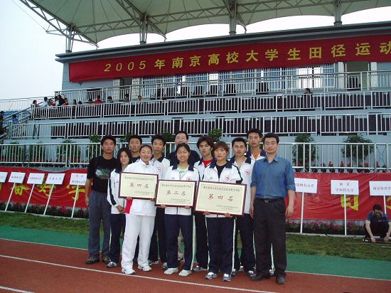 田径队建队十五年来,在推动高校体育运动发展、提高运动员自身文化素质以及培养高水平运动员方面都取得丰硕的成果。多次获得南京市高校越野长跑比赛男、女团体冠军;参加历届在宁高校田径运动会获得男、女团体总分前三名四次;2008—2016年累计六次荣获黄山国际登山大会高校组团体冠军;2009年世界大学运动会田径选拔赛上,孔庆文获男子标枪第四名;在第17届省运会高校部田径比赛上获五金六铜;在第九届全国大学生运动会上,王胜亚(200米)、查松山(跳高)、苏中峰(4×400米)同学勇夺3枚金牌;2013年尹兰兰获得杭州国际半程马拉松赛亚军;2014年在江苏省第18届大学生运动会中夺得4金7银3铜,男女团体总分238分;2015年度校田径队在省大学生田径比赛中共获得13项冠军;2016年在全国大学生田径锦标赛中孔景同学获得男子铁饼季军;2016年11月在江苏省大学生田径冠军赛暨全国大运会选拔赛上,田径队获得8枚金牌;2017年伏娜同学入选国家队参加亚洲田径大奖赛两站均获得第三名,参加全运会获得女子400米第四名、全运会女子4×400米接力银牌;在第十三届全国学生运动会上我校田径队3名队员勇夺2枚金牌、1枚铜牌的佳绩。田径队在平时科学训练的同时,注重队员的训练与学习齐抓,陆续有1人就读博士生、8人就读研究生,1人获得江苏省“优秀三好学生”称号,3人获得国家励志奖学金,并有2人成为2008年奥运火炬手和护跑手。充分体现了学校以人为本,教书育人为主旨,争创建设一流高水平田径队的目标。