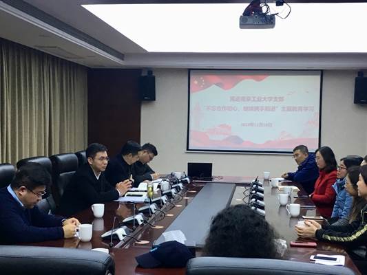 12月18日下午,民进万博体育bet 支部在行政楼114会议室举行“不忘合作初心,继续携手前进”主题教育学习活动。党委统战部副部长周辉到会、民进南工大支部全体会员出席学习活动。民进支部主委王济奎主持学习活动。
