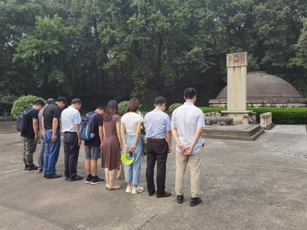 在邓演达烈士墓前,全体党员默哀一分钟,金万勤教授代表农工党南工大支部向邓演达烈士墓敬献花篮。随后,全体成员绕墓一周,瞻仰烈士墓。