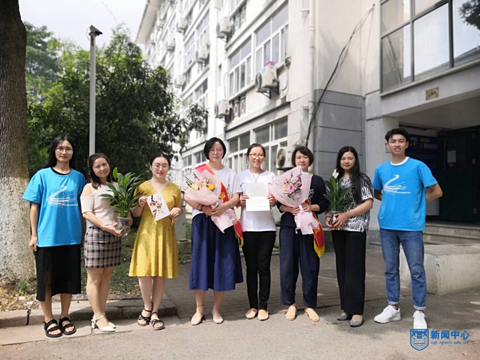 计算机科学与技术学院学生代表带着精心准备的鲜花、贺卡和绶带,前往亚青村、象山苑、檀香苑和东苑四个宿舍区为宿管老师的办公区添上一抹色彩,并祝福老师们生活多彩、工作顺利。