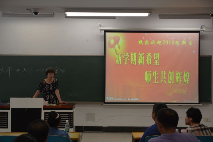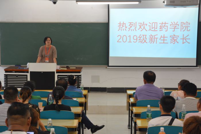 会议伊始,学院党委副书记首先代表学院全体老师向2019级新生家长表示衷心祝贺和热烈欢迎,同时感谢家长对学院的支持和信任。刘书记表示药学院的全体老师将会竭尽全力教导学生、认真负责地为19级新生成长搭梁为桥、铺石为路;她同时希望家校积极配合,协同育人,选择最美丽的大学,成就最美好的人生,为学生的成长成才再添动力。