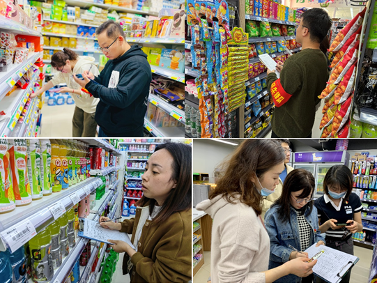 各支部党员下午两点在东苑食堂门口集中,后勤党委第二支部书记徐美燕、交通运输工程学院行政党支部书记闵珍,分别介绍了此次活动的流程、组织形式和意义宗旨。各支部党员根据区域分为六个检查小组,每个小组对各自负责区域的超市抽查40个左右的商品,将校内10余家超市的商品定价及同样商品在华润万家的售价进行比对,并进行详细记录。