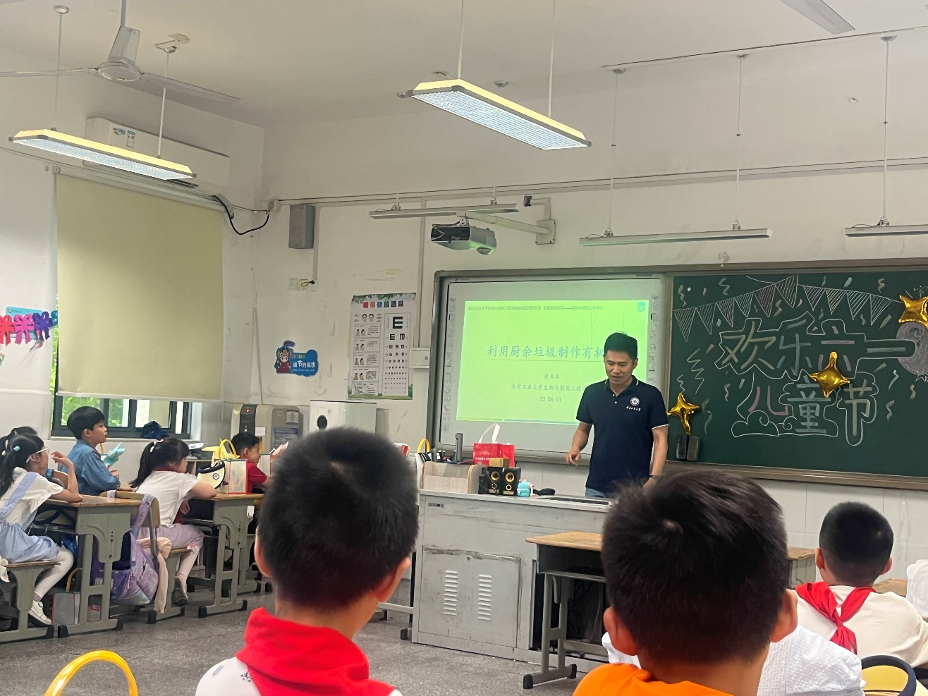 为推动主题教育走深走实,深入开展“三个一线”行动,鼓励党员师生在奉献社会中发挥作用,6月1日在第七十三个国际儿童节到来之际,生工学院党委组织教师第四党支部俞亚东副教授赴南京市将军山小学开展主题为“利用厨余垃圾制作有机肥”的科普教育活动。