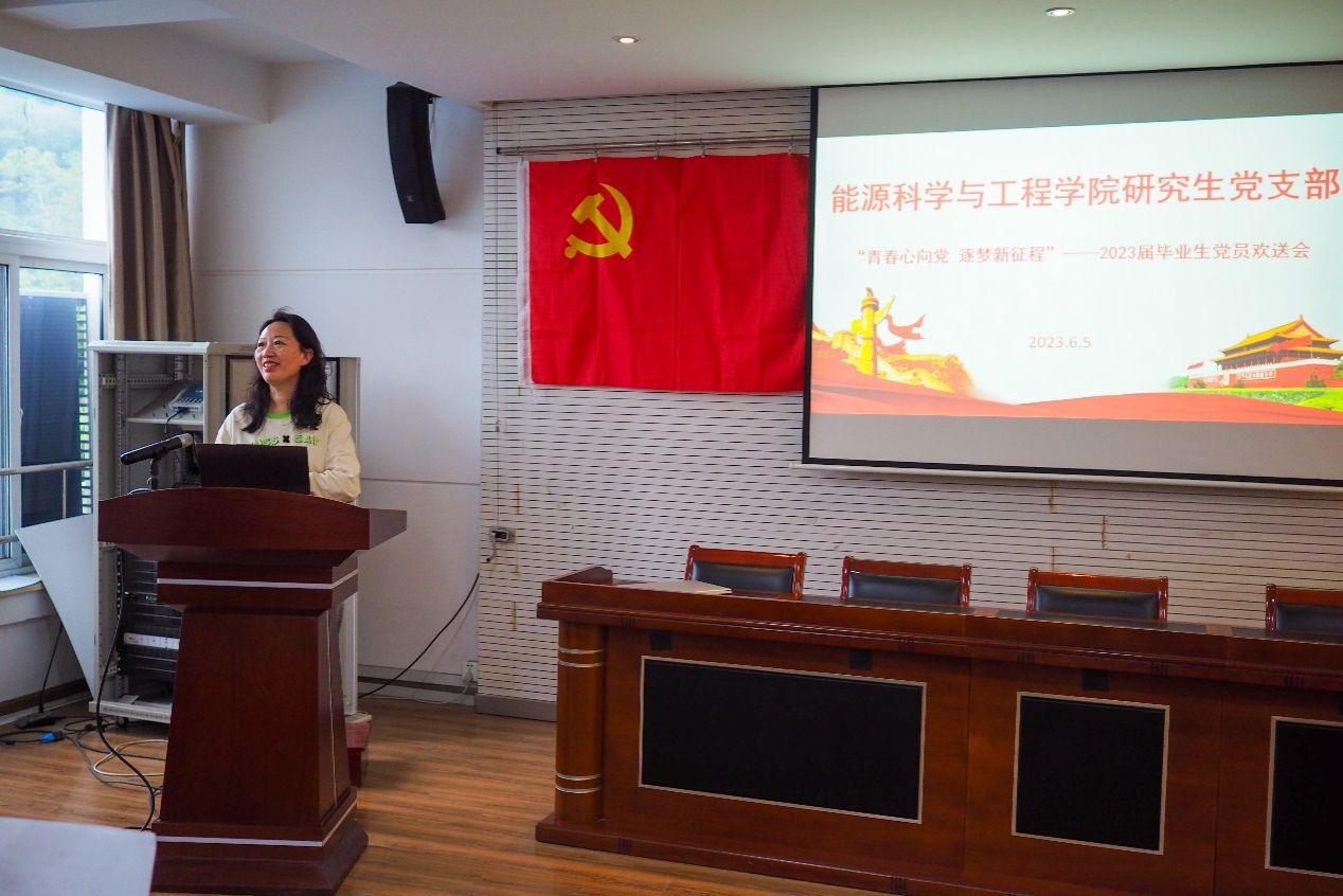 为深入开展学习贯彻习近平新时代中国特色社会主义思想主题教育,将思想政治教育更好地融入到文明离校活动中,能源科学与工程学院党委以主题党日活动形式组织欢送毕业生党员。学院党委书记戴宏、党委副书记王洪洲,组织员张煜子以及学生党支部书记杨涛、杨世君、付明浩和计雨涵参加了欢送会。