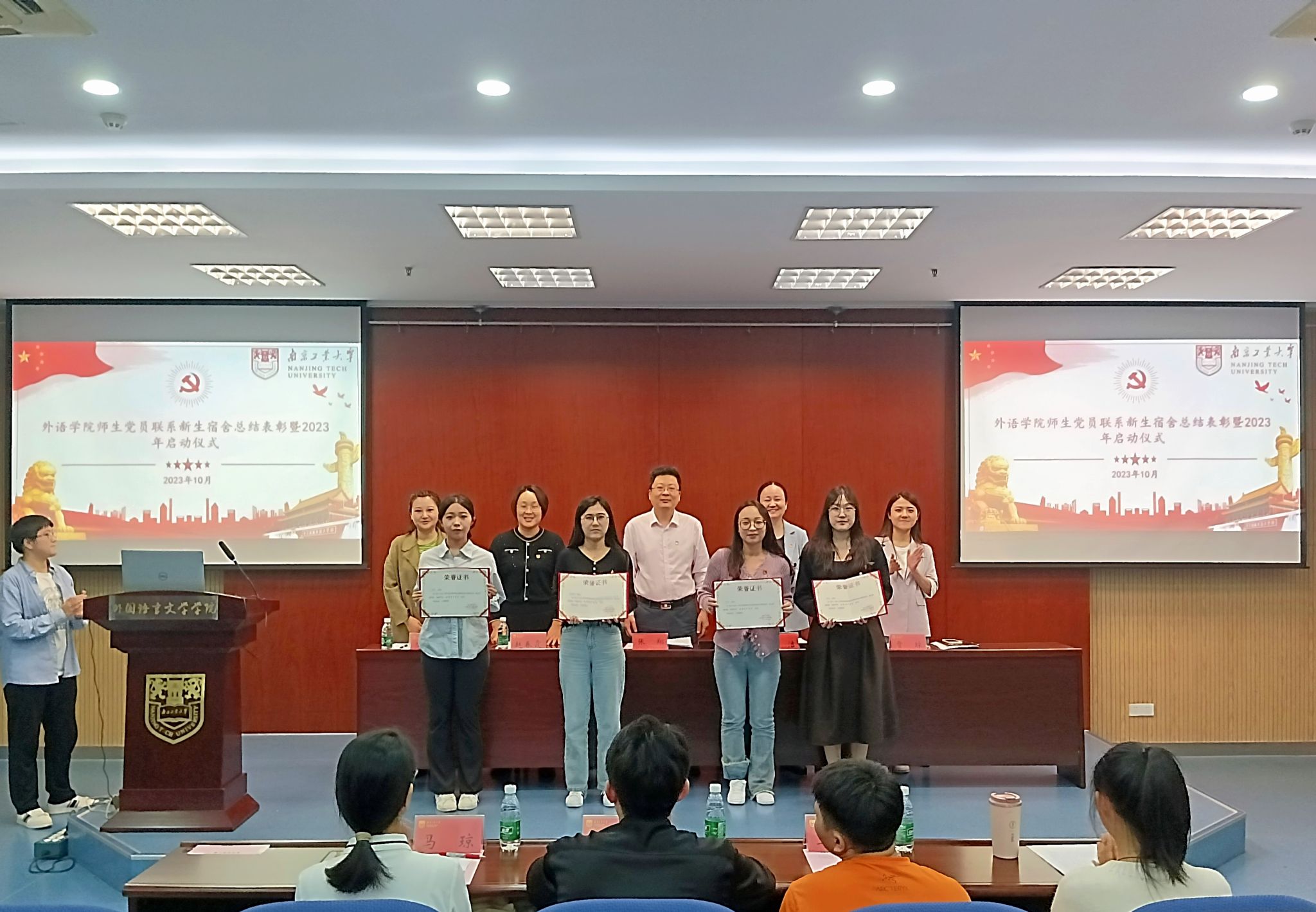 为充分发挥党员的示范引领和先锋模范作用,做好新生常态化入学教育引导工作,2023年10月31日下午,外国语言文学学院在进学楼501举办师生党员联系新生宿舍总结表彰暨2023年启动仪式,院党委书记张翔、副书记高洁、组织员赵春霞、全体辅导员、教工党员、学生党员、新生宿舍舍长等参加会议。会议由学生工作办公室主任范楚晗主持。