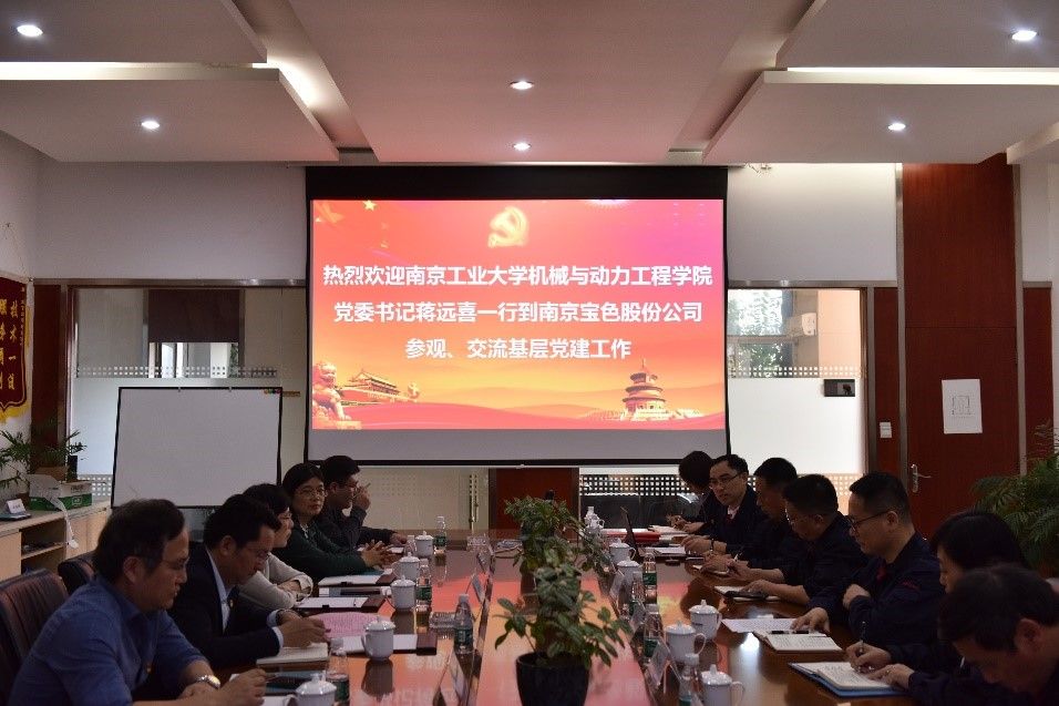 近日,机械与动力工程学院教师第五党支部与南京宝色股份公司第三党支部开展支部共建活动。南京宝色股份公司党委委员、副总经理、总工程师刘鸿彦,纪委委员、安全总监、安环部经理曹先博,副总工程师、技术中心副主任李卫华,副总工程师、焊接负责人杜永勤,技术中心设计室主任徐曦荣,学院党委书记蒋远喜,化工设备设计研究所所长李庆生,制图教研室副主任周俊静及双方支部党员代表参加活动。