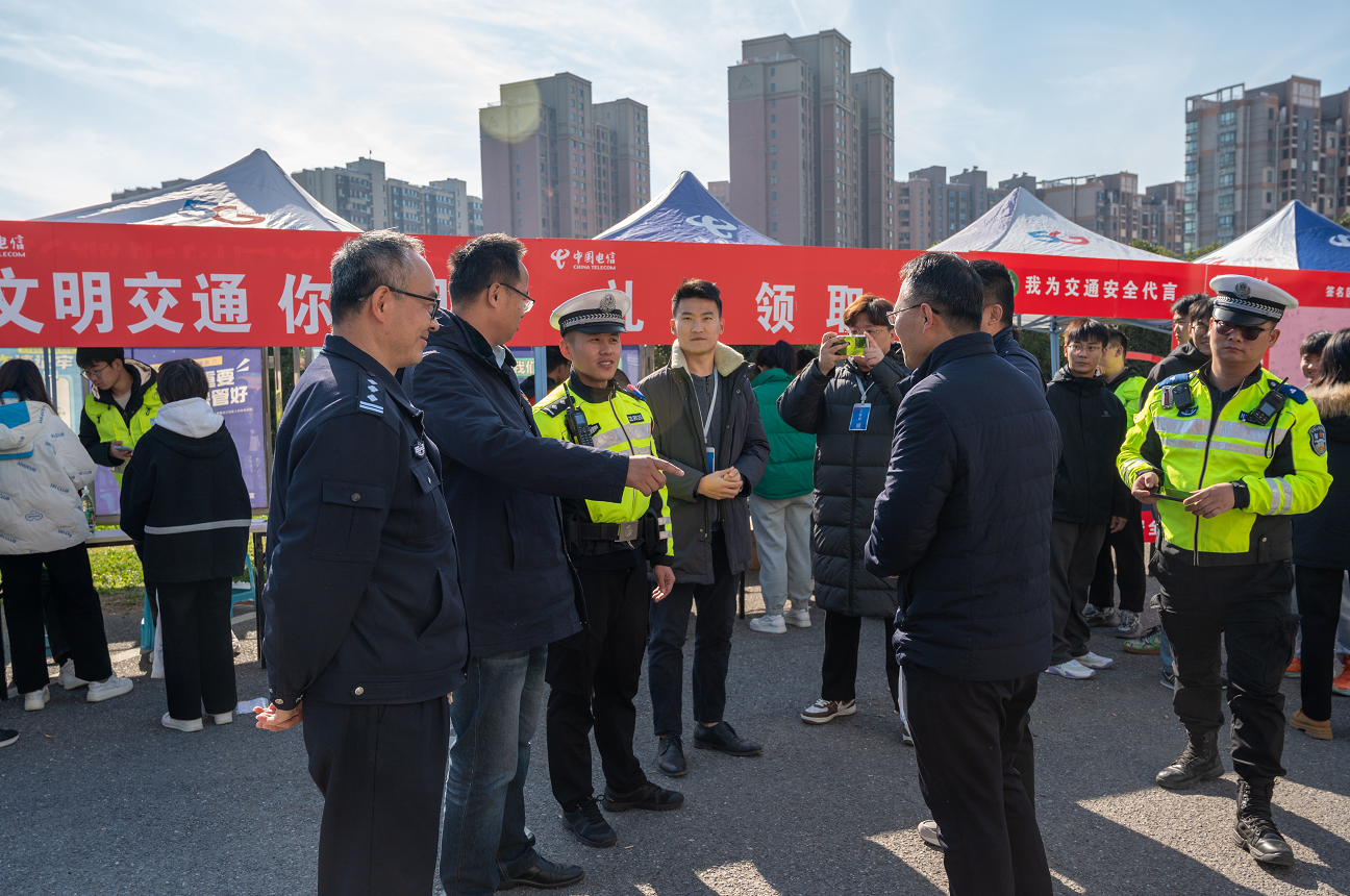 为深入贯彻落实党的二十大精神,强化在校师生交通安全意识,共建安全、有序的校园交通环境,12月1日,交通运输工程学院学生党支部联合校党委保卫部开展了以“文明交通,你我同行”为主题的“全国交通安全日”活动。江北新区公安分局内保支队叶江山、交警支队徐帅,校党委保卫部、保卫处处长季宜敬,副处长徐东、王利青,交通运输工程学院党委副书记刘全振、交通专业负责人王卫杰等出席活动。