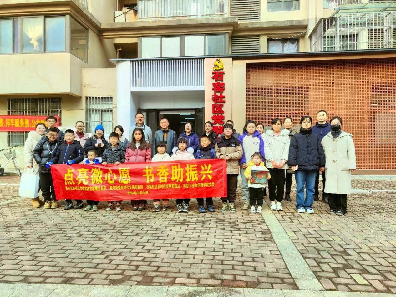 为深入学习宣传贯彻党的二十大精神,积极推进基层党建引领基层治理,助力乡村振兴,药学院党委2024年1月6日赴浦口区星甸街道石窑社区开展“点亮微心愿 书香助振兴”党日活动。石窑社区党总支书记马连龙、社区各党支部书记、社区工作者,药学院党委副书记刘哲、学院党支部书记、师生党员代表参加了活动。