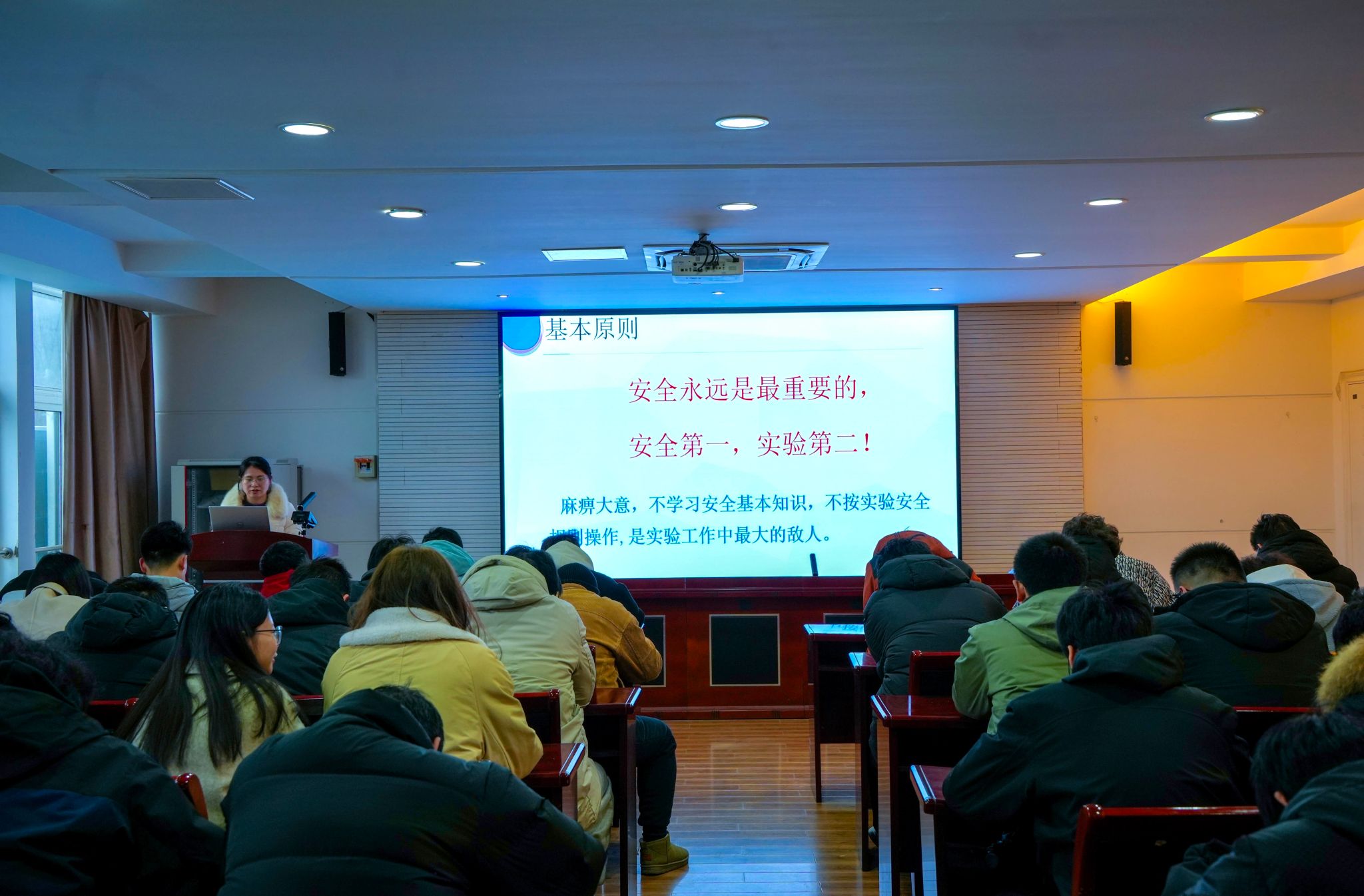 在启动仪式上,与会师生再次集中观看了校园消防安全警示片。学院实验中心曹赛男老师以“实验室安全环保教育”为题,从实验室安全操作规范、实验室安全环保记分管理办法、实验室事故应急处理预案等方面进行了全面详细的讲解。她强调,实验室安全不容忽视,实验室安全不仅是对他人负责,对社会负责,更是对自己负责,对家庭负责。在互动环节中,研究生党支部书记、研究生辅导员杨世君针对消除安全隐患以及电信诈骗常见手法、防范措施等方面做了全面解读。他指出,安全工作并非朝夕之功,安全来自于长期警惕,他希望学生要转变观念,重视安全,戒除侥幸心理,由“要我安全”为“我要安全”。