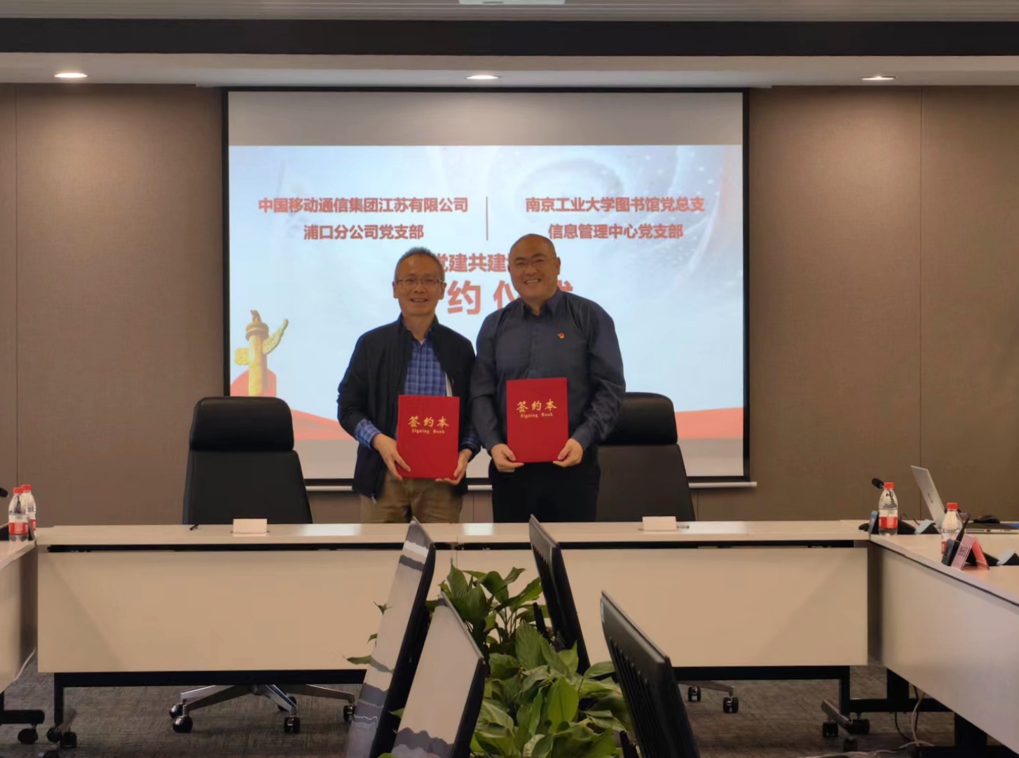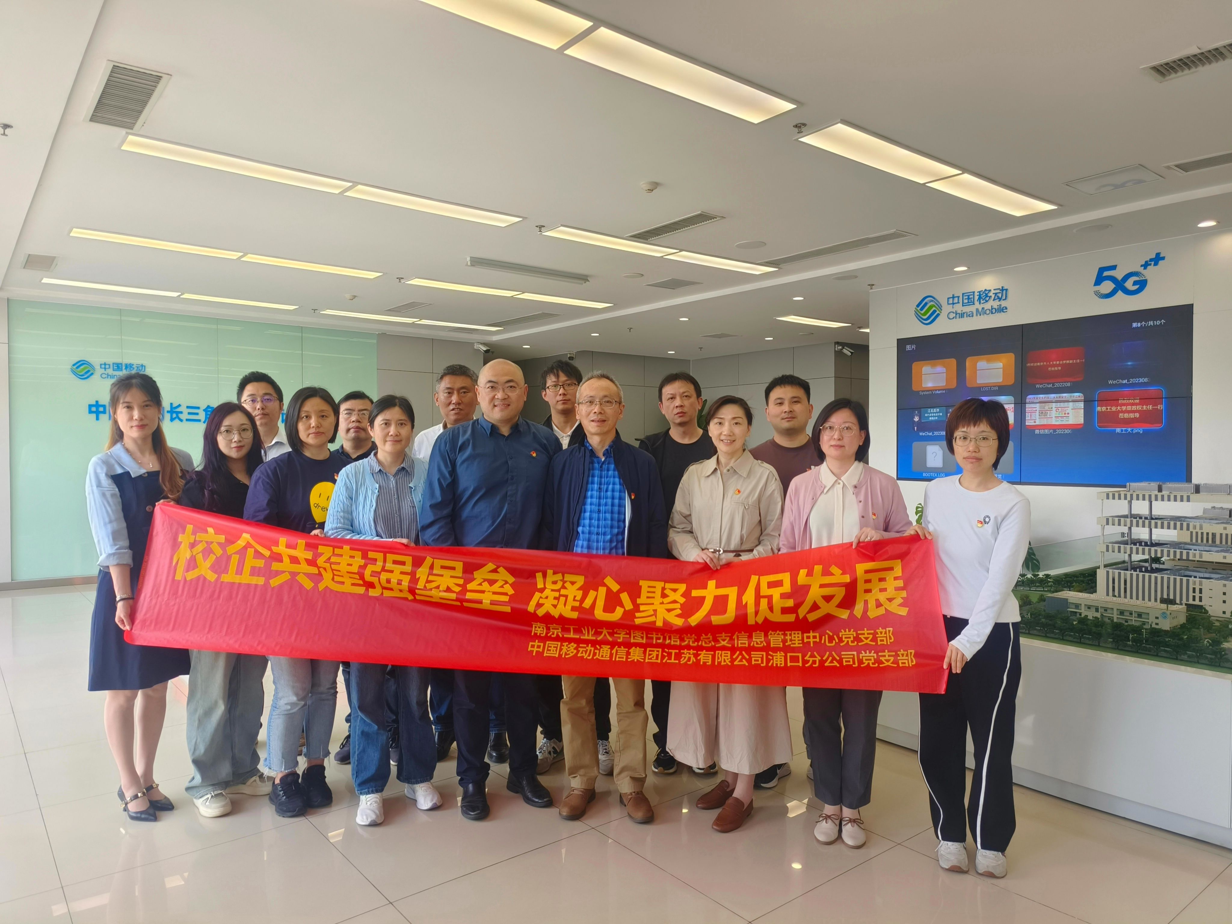 为深入学习贯彻习近平新时代中国特色社会主义思想,落实新时代党的建设总要求,充分发挥基层党组织的主体作用。4月24日下午,信息管理中心党支部与中国移动通信集团江苏有限公司浦口分公司党支部在中国移动长三角(南京)云计算中心举行了隆重的党建共建签约仪式。此次活动的主题为“校企共建强堡垒 凝心聚力促发展”,旨在通过党组织间的紧密合作,推动双方在人才培养、科技创新和智慧校园建设等多个维度的深度融合,共同提升服务社会的能力。