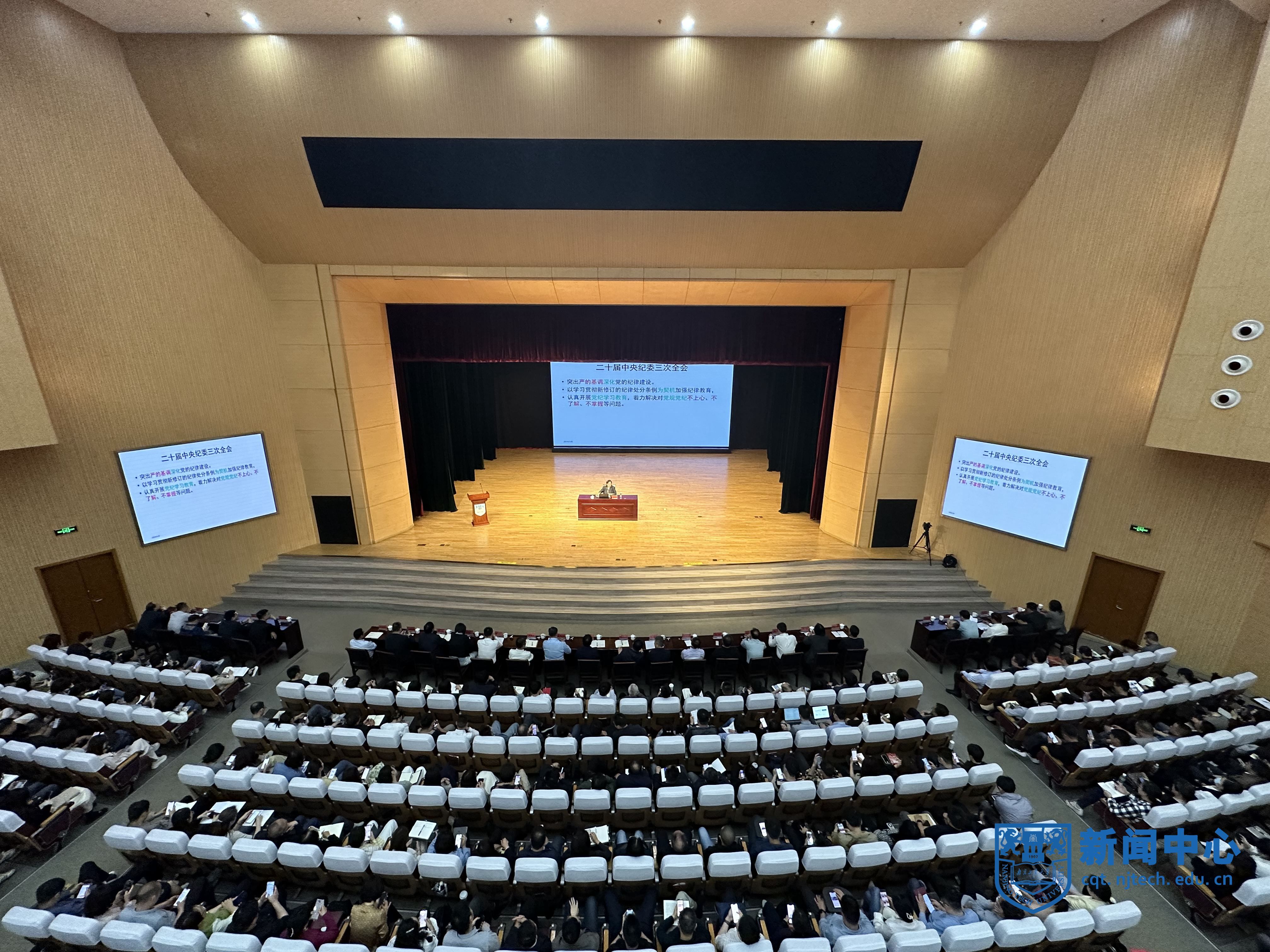 为扎实推进党纪学习教育走深走实,进一步增强党员干部学习贯彻《中国共产党纪律处分条例》的政治自觉、思想自觉和行动自觉,5月8日下午,学校举行党纪学习教育专题读书班报告会暨师生党员基本培训集中授课,邀请江苏省委党校廉政教育研究中心主任张桂珍教授以“学习贯彻新修订《中国共产党纪律处分条例》”为题作专题辅导。校党委书记芮鸿岩主持。全体校领导、中层干部、师生党员分别在博雅堂主会场和46个分会场参加培训。